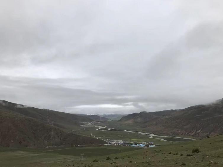318川藏公路华丽地从觉巴山顶盘旋而下,在山腰间画出优美的曲线,如美镇就被包围其中。