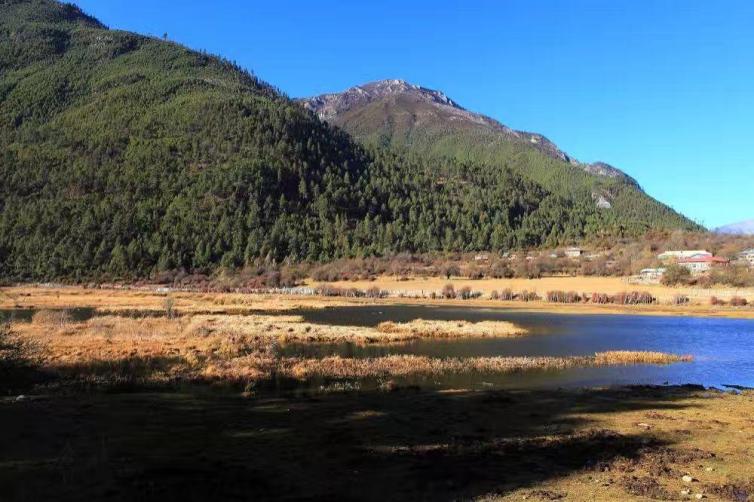站在噶朗湖岸上俯看湖水,四面的雪山、森林、村庄、田园尽收湖底,周围的景色更显得秀丽神奇,令人心旷神怡,个中味道美不胜收。