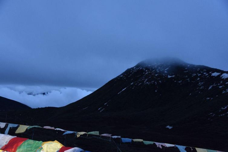 巨大的三角形峰体终年积雪,云雾缭绕,高空风造成的旗云被人们看做是神仙燃起的桑烟,这里是神仙居住的地方。