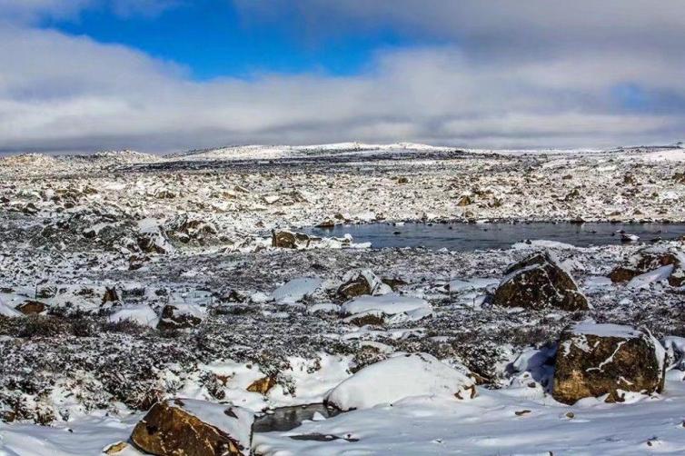 海子山,过了理塘,翻越泪珠般的海子山,随便找块石头,站到上面眺望蓝天白云雪山,一阵大风吹过,衣服飘起的时候有点儿潇洒啊!