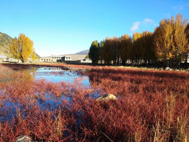 稻城红草地,穿过最美的川西公路,就来到稻城红草地,满眼的红色,很像是色彩浓重的油画啊!