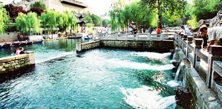 趵突泉公园,位于济南市中心,东与泉城广场连接,是一座以泉水、人文景观为主的文化名园,是泉城济南的标志,是泉城三大名胜之首。 济南被誉为泉城,“家家泉水、户户垂杨”,构成了独特的自然景观和历史人文特色。趵突泉是七十二名泉之冠,趵突泉群是四大泉群之首。趵突泉公园内泉水众多,有著名的金线泉、漱玉泉、马跑泉、卧牛泉、皇华泉、柳絮泉、老金线泉等共计27处名泉。昔日趵突泉,方圆不足四亩,既是香火胜地,又是卖艺、说唱、占卜和摆小摊的场所,1956年正式建园,历经几次扩建,如今面积已达10.5公顷,是一处不可多得的具有泉水特色的城市公园。