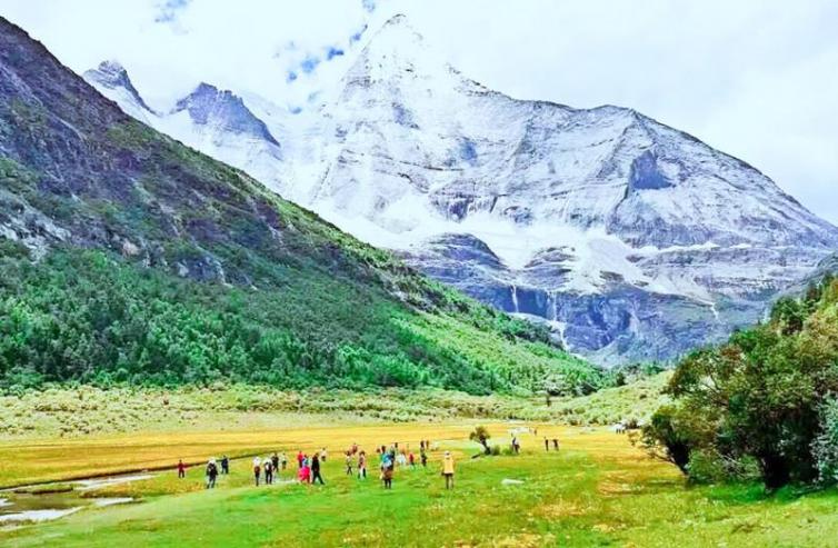洛绒牛场是亚丁景区内最著名的住宿地点之一,海拔4150米,是附近村民放牧的高山牧场,成群的牛羊在这里享受着充足的阳光、青青的草地和纯净的湖水。5月时草长鹰飞,风吹草低现牦牛,又背靠三座神山仙乃日、央迈勇、夏诺多吉,是观看三座雪山的最佳地点。长途跋涉的旅人可选择在此宿营,也可自己搭帐篷住宿。雪峰、森林、草场、溪流、湖泊、瀑布和牧场木屋相映成趣。