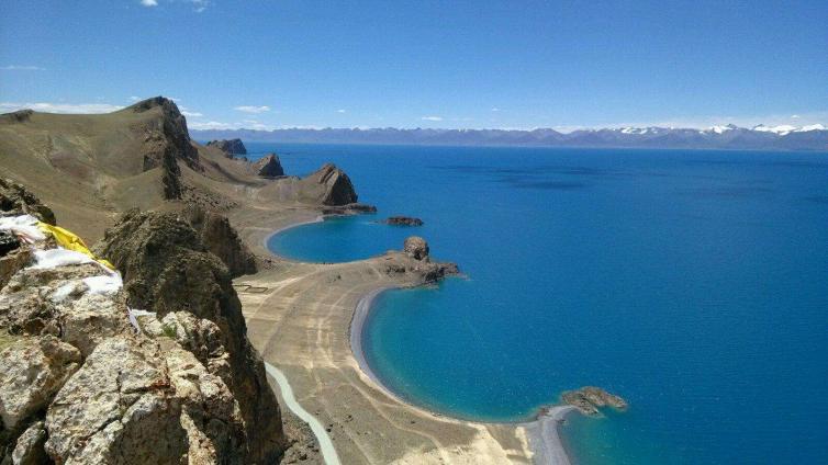 下岗巴拉雪山不远有一段很长的沿湖公路,在此停车驻足,或徒步至湖边,甚至露营湖旁是感受羊湖的最好方式。
