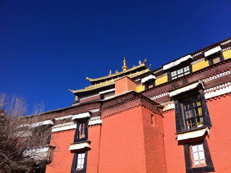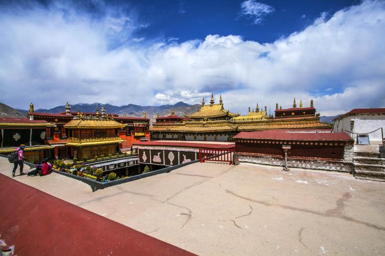 特别是站在扎什伦布寺入口处的大经场,四座宏伟的金顶红墙殿宇一字排开,在尼色日山的映衬下,更显威严肃穆。