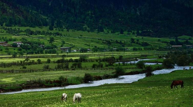 每年4月中旬到6月初,成千上万种野花竞相开放,山间云雾时聚时散,雪山、林海、田园勾画了一幅恬静、优美的“山居图”。