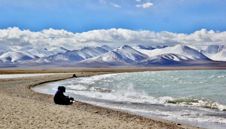 纳木错是世界上海拔最高的咸水湖,海拔4718m,是西藏最大的湖泊,朝圣者心目中的圣地。“纳木错”意为天湖、灵湖或神湖,湖中五个岛屿兀立于万顷碧波之中,佛教徒们传说他们是五方佛的化身,凡去神湖朝佛敬香者,都会虔诚地顶礼膜拜。