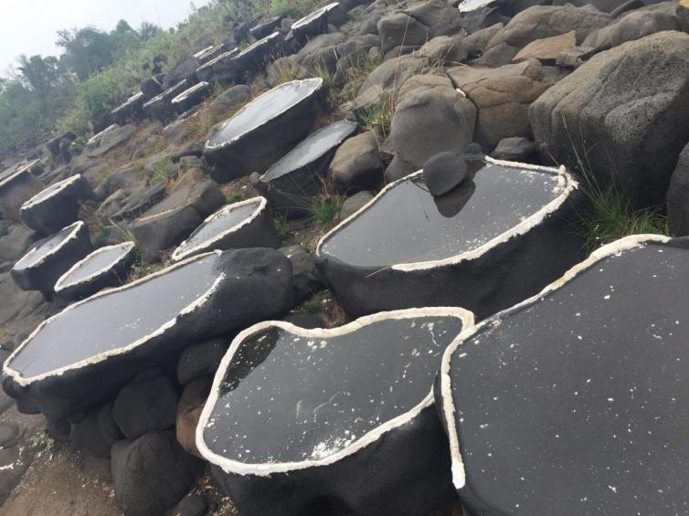 而今,当地只剩三十多户人家会晒这种老盐了,或许若干年后,这样的景致也会随古老的方式一同消逝吧,只剩光秃秃的大石头在这儿“验证”古老的历史。