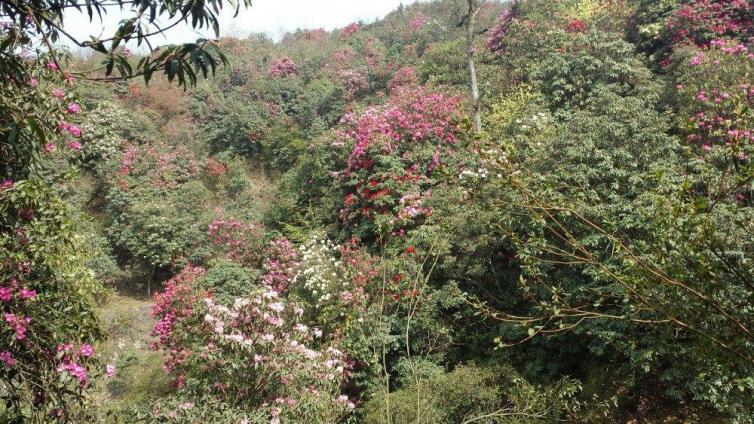 龙泉山的杜鹃花要比百里杜鹃的花期稍晚一点,每年4月下旬左右才开始绽放。花开之时,漫山遍野都被杜鹃花所覆盖,既气势磅礴又柔美壮观。红、白、紫三色杜鹃花交相辉映,近看花争艳,人在花中行,花映人更美;远看似团火,映红半边天。