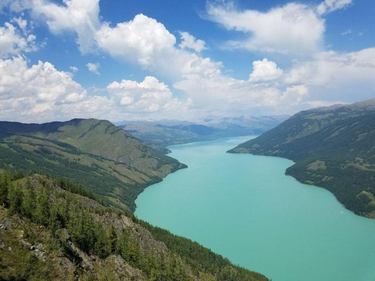 “喀纳斯”蒙古语,意为“峡谷中的湖”,一个座落在阿尔泰深山密林中的高山湖泊。喀那斯湖的北面是白雪皑皑的奎屯山、高耸如云的友谊峰,湖周重峦叠嶂,山林尤如画屏,湖光山色,美不胜收。
