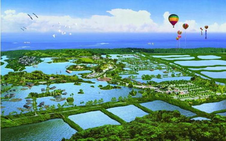 海上田园旅游区位于深圳市西部珠江口入海口,首期开发面积一百七十多万平方米,投资5.96亿人民币。是深圳西部旅游的支柱产业。海上田园整个园区分基塘田园景区、金色年华景区、戏水乐园景区、水上街市景区、生态文明馆、绿色雕塑群、仿生态度假村、水上木屋度假区、田园密林区、生态生产区等十个不同特色的主题景区,充分满足旅游观光、休闲度假、教育示范等不同形式的旅游需求,适应不同年龄和文化层次游客的需要。作为以生态旅游为主题的大型公园,海上田园以自身独特的基塘田园风光为依托,在充分展示自然之美的同时以恢弘的气势、丰富的内涵、多变的布局、迷人的景观将1.7平方公里的沿海滩涂变成巧夺天工的人间仙境。景区特色饮食:珠江入海口咸淡水交汇处的黄皮头、跳跳鱼肉嫩味鲜。