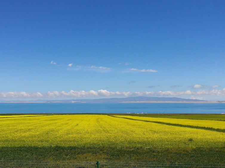 湖边的草原、花海、候鸟、沙漠更是让景色丰富多彩,吸引着所有人背起行囊迈步前来。现在是青海湖最美的时候,环湖千亩油菜花竞相绽放,碧波万顷的湛蓝外围散布着金灿灿的亮黄,高山牧场的野花五彩缤纷,如绸似锦,数不尽的牛羊膘肥体壮,点缀其间。