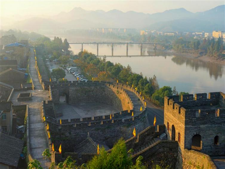 雄关不独北国有。坚固的城防,雄伟的结构,丰富的历史文化内涵,构成了中华大地上独具特色的古城文化。岁月沧桑,斗转星移,遗存已经非常稀少,而被誉为江南第一长城的临海古城墙,却是独具特色的古城墙硕果仅存者之一。临海古城墙沿江而起,依山而筑,远处望去,古城墙犹如一条长龙掩映在青绿丛中,两侧古木参天,常年苍翠,更增添了一分灵秀。