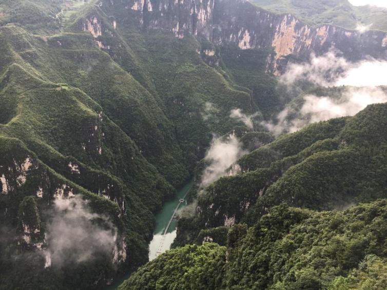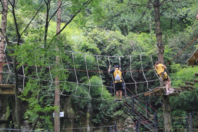 高空荡桥,抓着绳子做的护栏,在山崖之间随风摆动,绝对是小伙伴们终身无法忘却的难得体验。