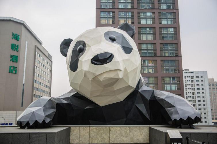 必打卡的地方就是爬墙的大熊猫,如果要和它的正面合影,进入IFS商场坐电梯上7楼就可以看见啦。
