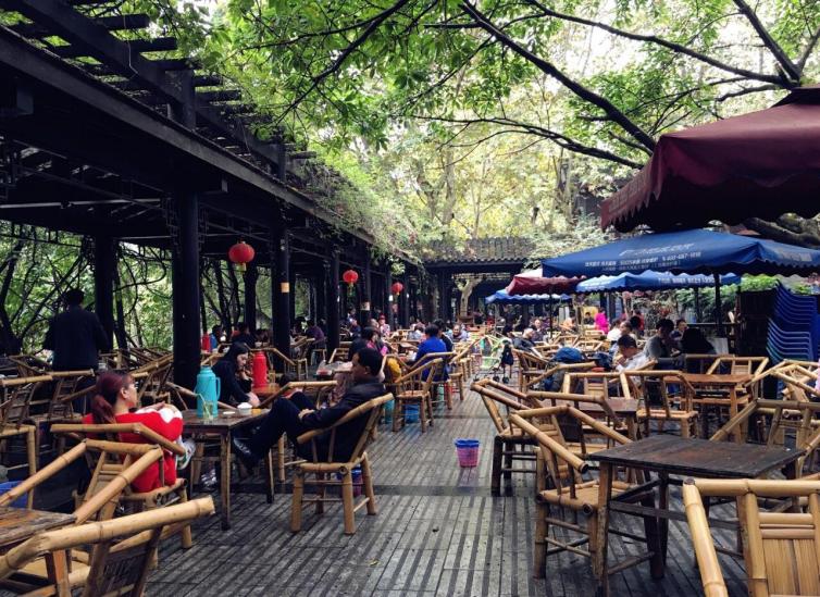 建于1911年的人民公园是一个街心公园,一直是成都人喝茶悠闲爱去之地。只有见识了人民公园,你才能真正体会到“休闲之都”的生活方式,一出太阳,公园绿荫下总是坐满了人,喝盖碗茶,搓川麻,嗑瓜子,唠嗑,构成了老成都最悠闲的日常。鹤公园里有家百年的鸣茶社,让很多人慕名前往,绿荫藤椅间就是成都最具代表性的茶馆文化。