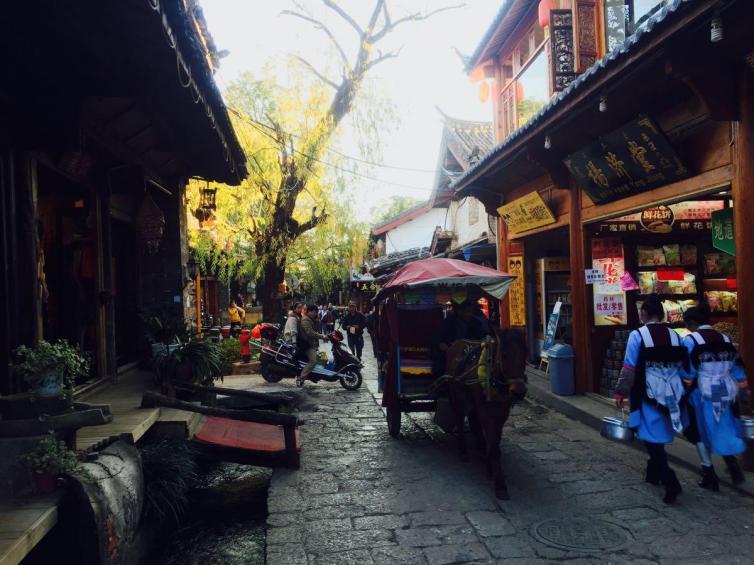 束河古镇离城区不远,一般从城区乘坐滴滴,15元左右就能到了。也有专门到束河古镇的公交车(6路)。