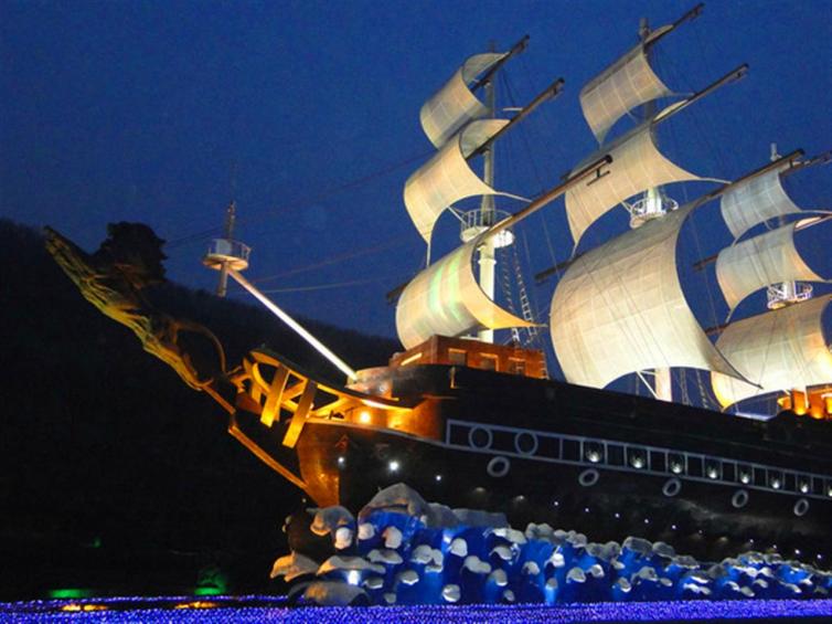 (2)丹大高速进入金石滩,一路直行董家沟(金石滩)下道,按标识行至金石号帆船处,即进入金石滩。