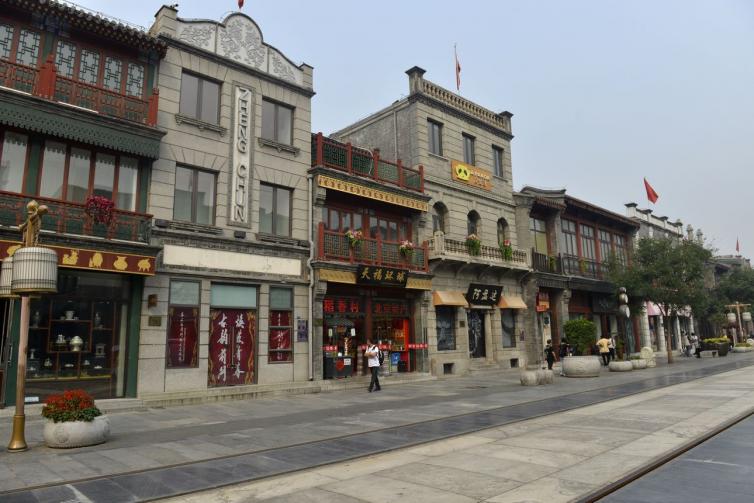 天安门广场南边的新前门大街,前门大街商贾林立,全聚德烤鸭、都一处烧麦、六必居酱园、同仁堂药店、瑞蚨祥绸布、内联升鞋店、张一元茶庄,还有鲜鱼口小吃,这里是吃货们的天堂,购物的好去处!