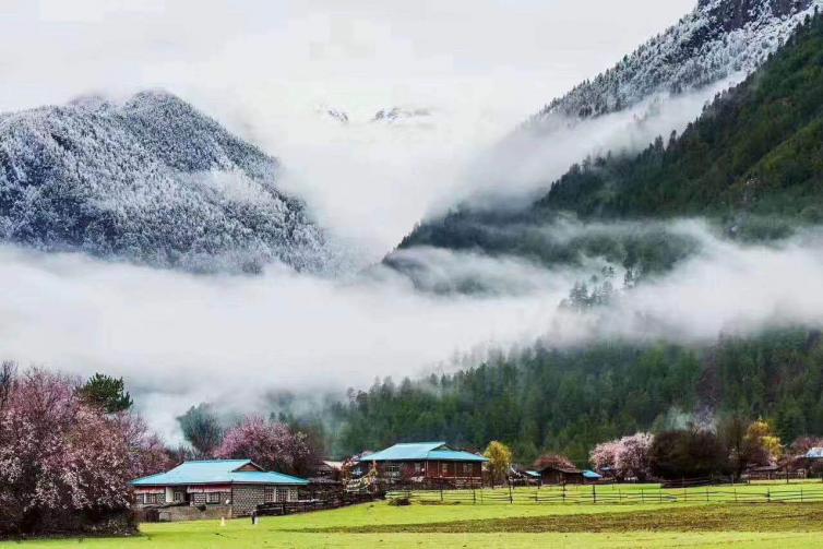 12、去有“东方瑞士”之称的鲁朗,看冰川衬映下的田园美景。