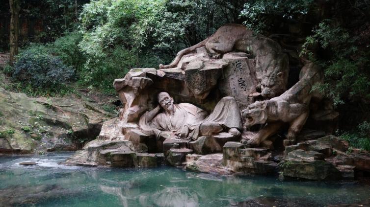 虎跑梦泉位于西湖之南的大慈山定慧禅寺内,是一处以“泉”为主题的景观,又是以性空、济公、弘一法师传奇故事为特色的人文景观。民间传说唐代性空大师游历此山,这里风景优美,只是无水源,决定去别处,忽然有神人告诉他即将有二只老虎会来挖泉,翌日,果然有二虎跑山出泉。虎跑泉为杭州名泉之一,水质纯净,甘冽醇厚。