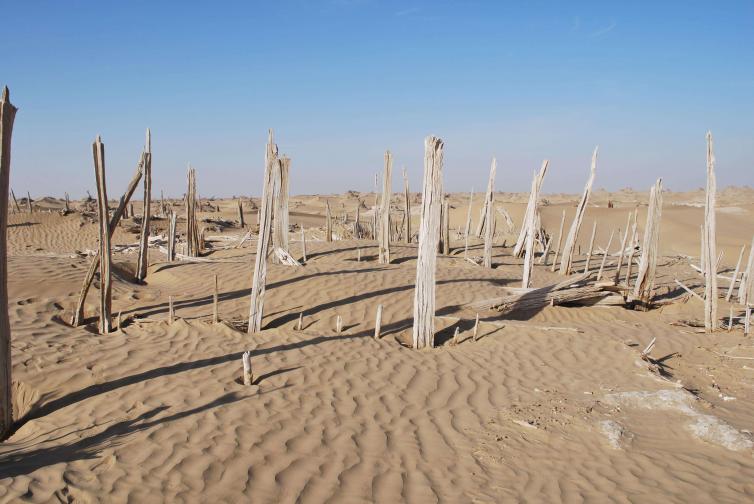 圆沙古城,是新疆迄今为止发现的年代最早的一座古城。位于新疆维吾尔自治区西南部于田县大河沿乡。圆沙古城又名尤木拉克库木古城,地处塔克拉玛干沙漠腹地,几乎全被沙丘覆盖。古城呈不规则四边形,城墙周长995米,高度、顶宽均约3—4米,木骨泥墙结构。