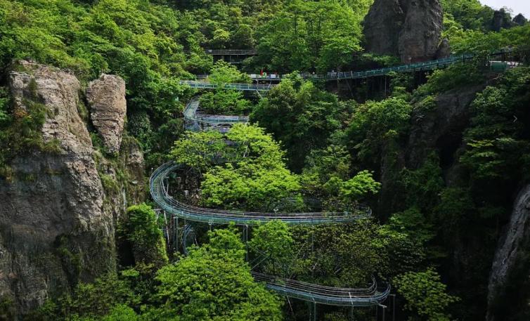 九曲十八弯、360°回转造型设计的森林高空玻璃漂流,弯道一个接一个,仿佛体验“浪尖过山车”