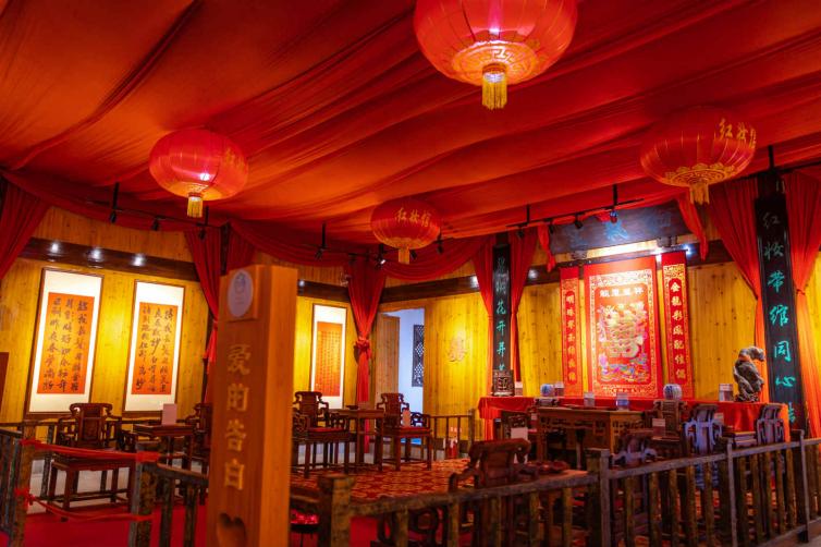 整个表演有福袋舞、穿越十里红妆、入五福门、拜天地、拜高堂、掀盖头、神树祈福等,将真实再现中华传统文化中敬天、敬地、敬人的理念,以及对“孝道”作为核心内容的尊敬,也充分体现了当地人对“千年古樟、千年神树”的敬畏之心,从神树周边哪些层层叠叠的红丝带,足以证明人们对神树的崇拜