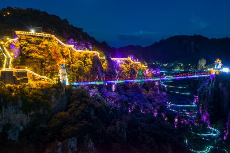 有个绝美的玻璃观景胜地,垂直高度达180米,长200多米,飞龙在天玻璃桥,是首座将文化、体验融为一体的玻璃桥