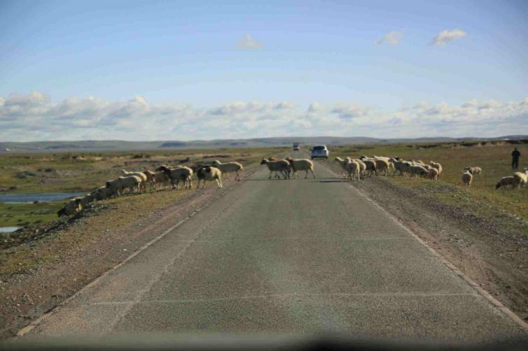 总体来说,S303,路宽约3.3米,笔直贯通,算是单行道,会车便需要侧移到路基上。路边风景就是亲想象的那样,蓝天、白云、绿草地,马儿、牛儿、羊儿随处撒欢,风景如画。