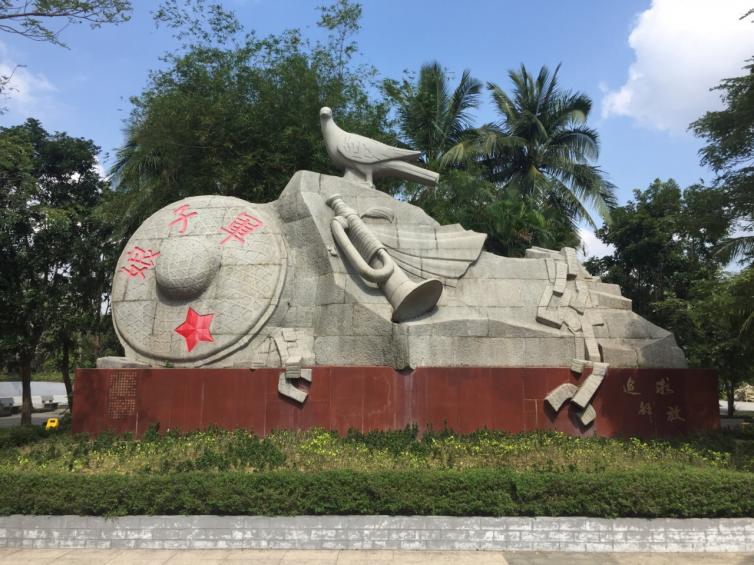 红色娘子军纪念园,为全国红色旅游经典景区,位于琼海市南门的街心公园,是融热带风情园林、大型雕塑、浮雕及歌舞表演为一体的大型文化旅游纪念园,雕像由花岗石雕刻而成。