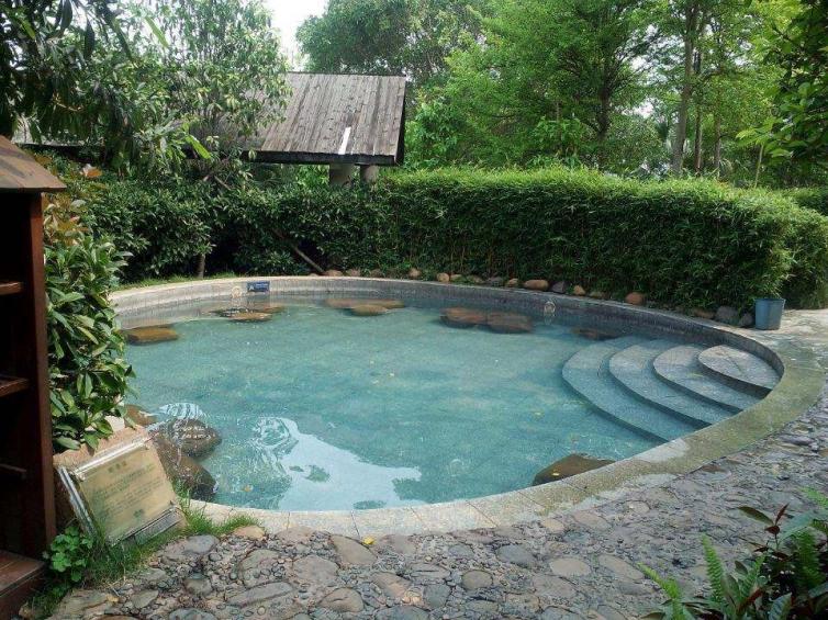 九乐宫温泉历史悠久,据专家初步探测,温泉地带长2公里,现有自喷泉多处。以其良好的医疗保健功效闻名遐迩,是琼岛最理想的沐浴医疗热矿水,被当地人称为“洁身龙水”。