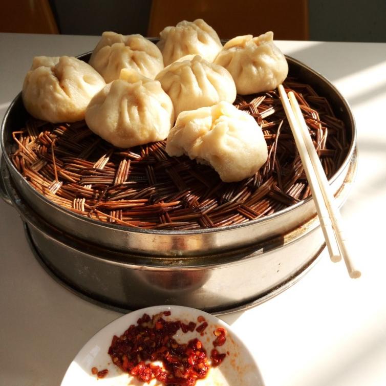 表皮松软细腻,肉馅很新鲜,没得乱七八糟的调味料,只放了姜末和葱白提味。有时候里面的肉汁太多,包子皮都会透出来亮亮的油渍。吃的时候要先开个小小的口子,因为会有汤漏出来的哟。