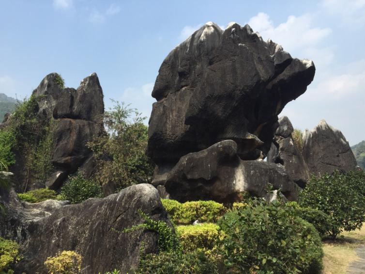 玉石林风景区是由罕见的由汉玉石柱、石笋组成的“玉石林”。它大约形成于一亿多年前的侏罗纪时期,由于燕山期地质的断裂隆升和长期的岩溶渗蚀及局部受高温影响,加上自宋朝以来1000多年的锡矿开采业,使区域内地层峰从间石芽裸露、奇峰突兀,石笋石柱、地槽漏斗、狭缝密布,成就了“千年骆驼”、“空中走廊”、“一线天”等众多的奇异自然景观。它独立于四周的石灰岩山中,被游人誉为“人间仙境”,被地学专家称作地质奇迹。