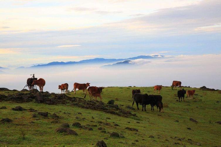 罗定八排山风景区由八座别具一格的山脉组成,故名“八排山”。八排山天堂顶是一个天然小草原。当看见这些高山上的平原、草原、树林,就有一种仙境般的感觉,空灵、唯美,不食人间烟火。那些造型别致的树木,那些自由自在的牛牛,那些柔软柔软的草儿,那些圣灵般的花儿,那些温柔亲吻脸庞的风儿....