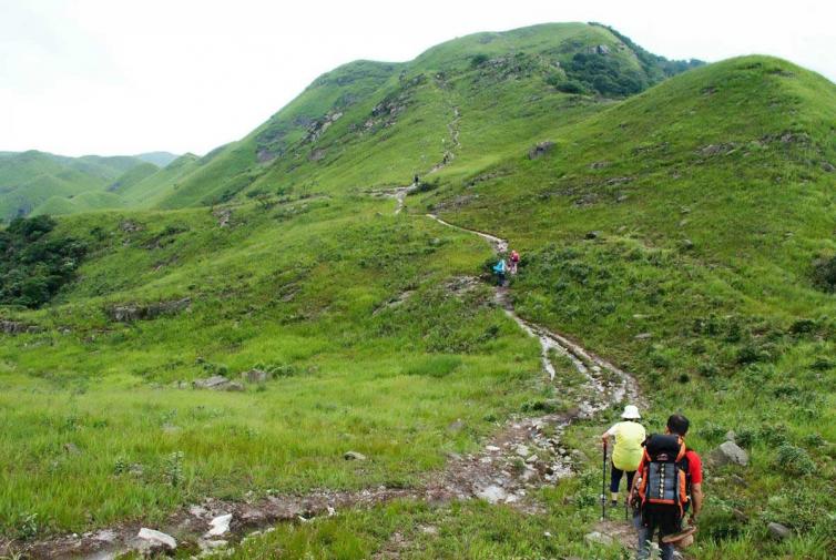 阳春鸡笼顶,这里有南方最大的草原,这里有世外桃园般的美景,鸡笼顶的风光很独特,灌木林与草地泾渭分明,山脊全部长着厚厚硬实实的一层草皮,最高的草不超过20公分。而山坳全部长着苍翠的灌木林。这里数量繁多的动植物种类、高浓度的负离子、充裕的水资源都十分适合“森林浴”。