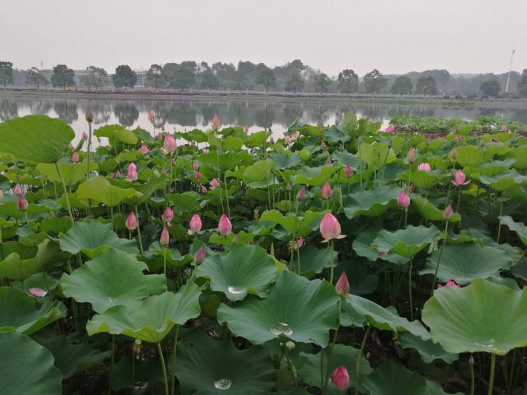 一片湿地公园之中,围绕着大片荷塘。这里有湿地最美的飞鸟、自在的游鱼,还有爱荷的路人。