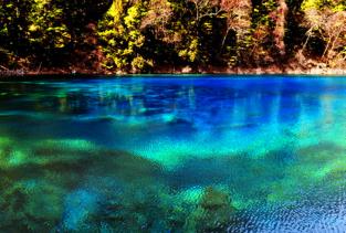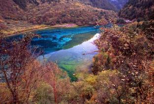 1.五彩池五彩池位于则查洼沟南段,是九寨沟最小、最艳丽的池子,且四季不冻。以秀美多彩纯净通透而闻名,因富含碳酸钙的水中,所以湖水光影