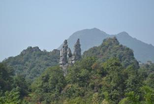 今天,我们要去一个奇石众多的地方--太姥山。我们一家自驾游去太姥山玩。一、夫妻峰一进门,我就看到了著名的“夫妻峰”,山上的两块