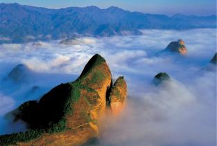 1.丹霞山丹霞山是广东省四大名山之一,位于粤北仁化县城南九公里处,以“奇,险,美”著称,因“色如渥丹,灿若明霞”而得名。“桂林山水甲