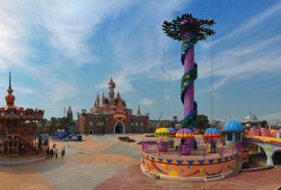 1.梦幻乐园梦幻乐园总建筑面积3.2万平方米,采用了面积达10000平方米的平面网架无柱大空间和特殊的保温玻璃天幕顶棚。在冬季室内的南国风光与