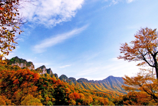 光雾山,被誉为“中国红叶第一山”,四时之美,以秋天为最,绵延百里的红叶色彩斑斓,蓝、绿、黄、橙、红呈梯次变幻。这里秋天的红叶,时而挂