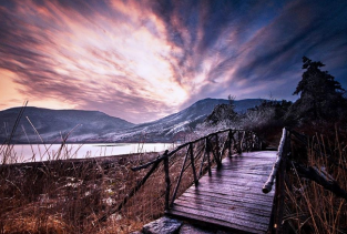 蜿蜒的道路,幽静的森林,飘渺的村庄……枯枝老树总是狠狠地抓住泥土的滋润,村庄却只是隐隐得躲在万丈悬崖下。雨水润透了山坡的绿,山连山,