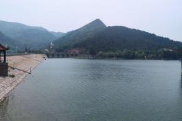 水库北头有一路标“百丈崖水库”,沿所指方向上行,经过一段高低不平的沙石路,水库呈现眼前。