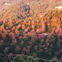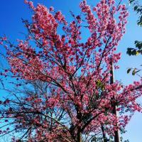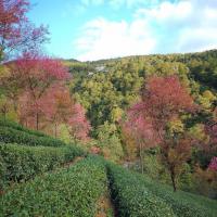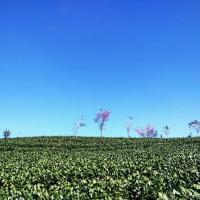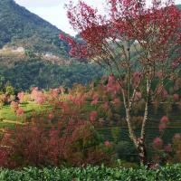 在樱花谷一号观景台观赏冬樱花,美就一个字。再沿步道用20分钟走到二号景区,就是在一号观景台看到的那面茶树坡,抵近观赏樱花。可以在无量山樱花谷入口附近,二号景区附近,或公路边的客栈住宿。