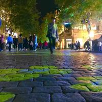 哈尔滨中央大街非常值得去的地方就是百年老街.夜晚的街上灯火璀璨.马迭尔的露台有异域风情的表演者.弹奏表演.这是其他城市没有的.整条街都有各色的表演及乐器演奏.有独特美食.而且只有美丽的冰城哈尔滨才有的.冬天的马迭尔冰棍.烤红场等.走在历经百年历史的步行街的石路上.仿佛回到了百年前的繁华.昨晚哈尔滨市民的我几乎每天都到中央大街去自拍.在此欢迎世界各国的朋友们亲临现场感受一下