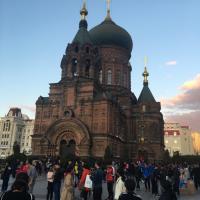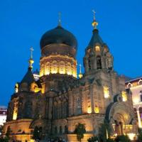 圣索菲亚教堂是俄式建筑的风格,在晚上的话会更加的漂亮,很喜欢这个教堂,不论是早上还是晚上,它都是那样的美丽,不过最近在维修好像要19年的12月才修好。