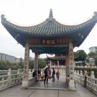 甲秀楼是贵阳的建筑地标,到贵阳必游景点。此楼建于明代,共三层,建于南明河一大块基石上。浮玉桥将涵碧亭,甲秀楼,翠微园南北联成一线。龙门书院不开放,国庆第七天早上游甲秀楼,景点免费开放。入夜甲秀楼旁灯火通明,景色迷人,游客与市民沿南明河水道夜游散步,欣赏周边夜景。