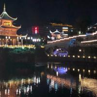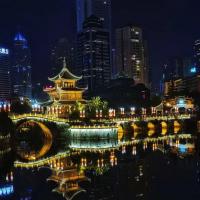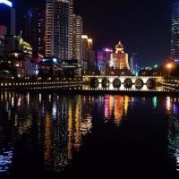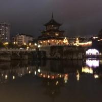 我们吃完杨阿姨的丝娃娃后,沿河走边欣赏,约走了十五分钟可以看到甲秀楼了,依河而建,在夜晚的灯光下很漂亮,白天可以开放喝茶,我们去的晚了已经关了,所以拍了拍照就往回走,河边景色也不错,贵阳现在建设的很好,城市很美观。