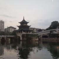 访过湖南的岳阳楼。。到了贵阳,怎么也不能错过它的标志性建筑甲秀楼。雨中的楼宇,上游的雨水绕过楼宇奔向下游,气势磅礴,独特。一步之遥还有微园。出来甲秀楼,到马路对面向左走,沿着文昌南路可以到文昌阁。可惜景点内部成了茶馆。